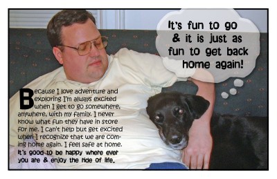 Because I love adventure and exploring I’m always excited when I get to go somewhere, anywhere, with my family. I never know what fun they have in store for me. I can’t help but get excited when I recognize that we are coming home again. I feel safe at home.
