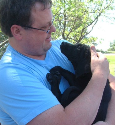 We let Clifford and Casey play a few minutes ago and it was fun to watch. Casey has grown in confidence in the week she has been with us and she held her own with Clifford who is almost a year old and three times her weight. A couple of times Casey latched on to Clifford’s tail. Clifford didn’t quite know what to do, so he went around in circles trying to get her to let go. Mean while Casey is going around in the same circle with her mouth firmly on his tail. It was hilarious – two black labs following each other around and around, a big one and a little one! They enjoyed munching on ice cubes together in the kitchen afterward to cool them down.