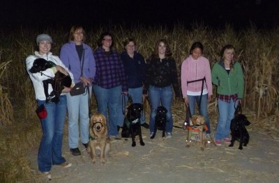 Tonight we went to the Crazy Corn Maze in West Jordan for puppy class. All the puppies did very well. They seemed to take walking among all the cornstalks in stride. Every so often Lindsey would have us trade puppies around so the dogs would get use to different handlers. One person said that Casey was the best behaved dog she had handled so far tonight. Casey is exhausted now. She had a full day with a chance to romp in the back yard with Clifford before class and we ran an errand to Sears after class.