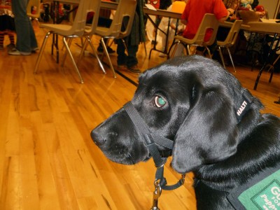 Our ward had their Halloween Party tonight. Banta would have loved to go. I can’t wait until she is free to go out socializing again. Casey handled everything very well. There was tons of stuff going on, including balloons popping across the gym. She got to say high to lots of kids in costume including the one in the photo below who’s nick name is KC. I’m very proud of how good Casey is doing. She was so timid and scared when she first got off the truck. Her world had turned up-side-down. Once she adjusted, with Banta’s help, she was a whole new puppy with plenty of confidence.