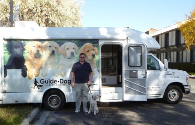 At noon today we put Banta on the puppy truck for San Rafael, California. There were eight puppies getting on the truck today. (I think that was the right number) It was a very different experience than with Apex because with him we dropped off early in the morning and there were no other raisers dropping of their pups off that morning. All of us where gathered there at the truck and no one wanted to be the first to put their pup on so I figured we might as well go first since Banta is early in the alphabet. She went right into the kennel on the bottom left side of the truck in the very back. She handled it all like a pro and got in the kennel just fine.