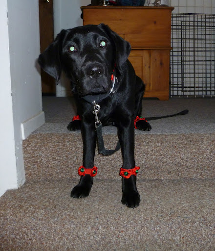We are sending out 2010 quietly at home tonight. Casey is snoozing on her puppy bed. She now weights 45 lbs. We have Radison spending a couple of days with us while her family goes skiing. She is a joyful pup. Casey and Radison get along very well. They are only 10 days apart and both are black but their builds are almost opposites. Casey is on the stocky square side of labs and Radison is more like a gazelle with a long lean face. The two of them love to share a toy and play a gentle game of keep away. Happy new year to all the puppies in training and working dogs out there.