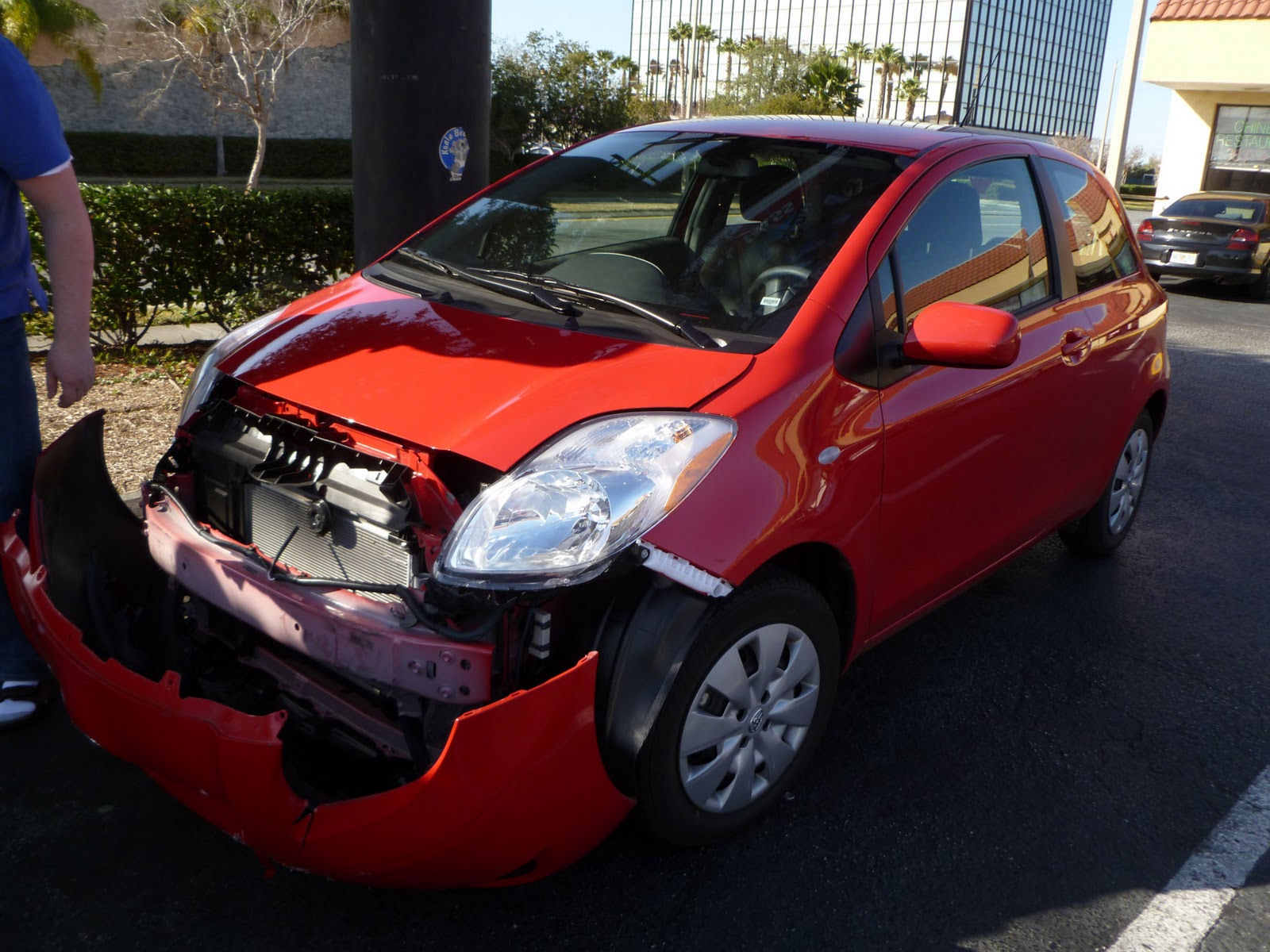 | Our rental car with the bumper hanging off after the acident |