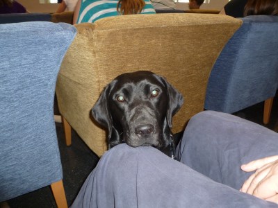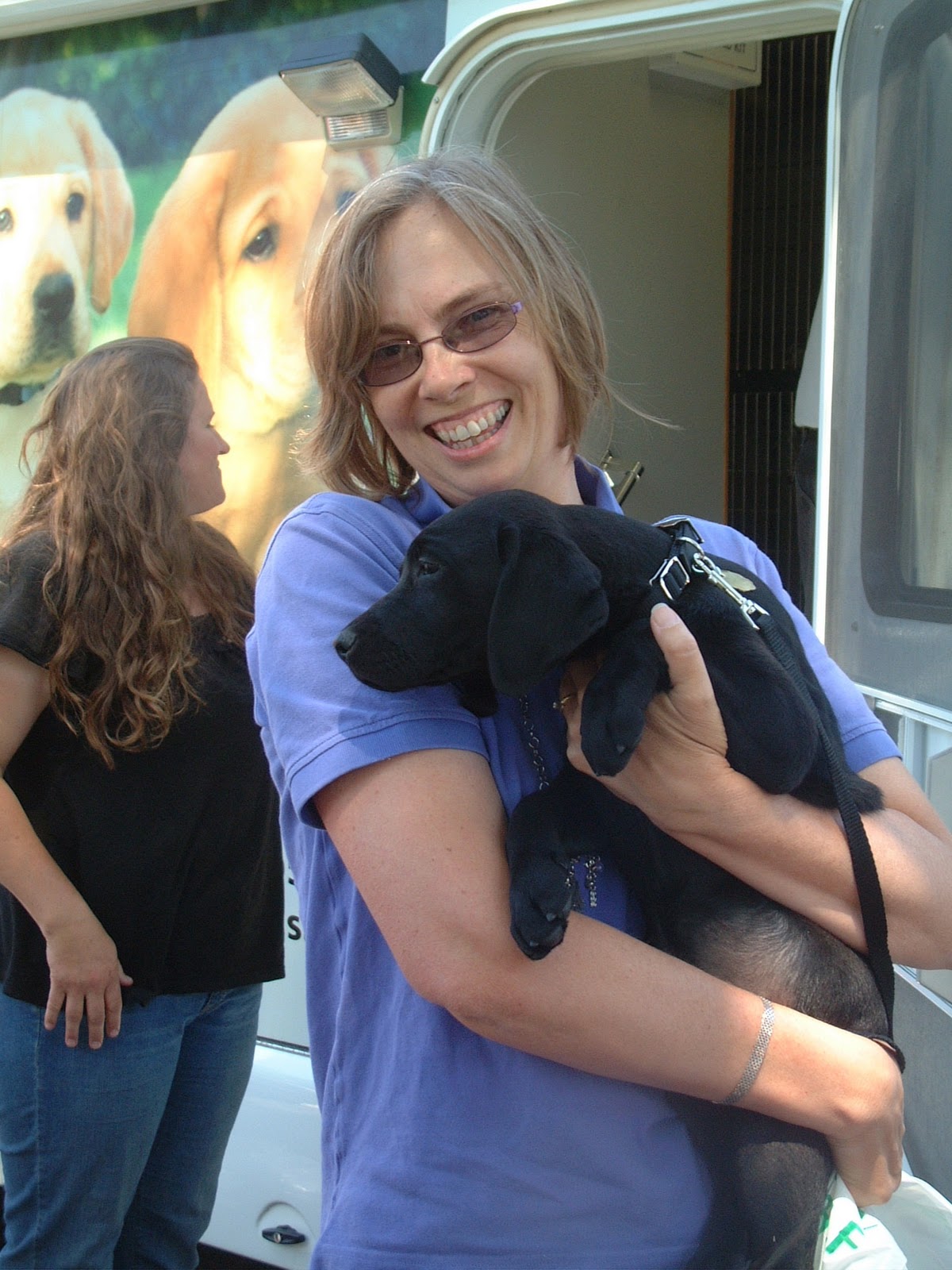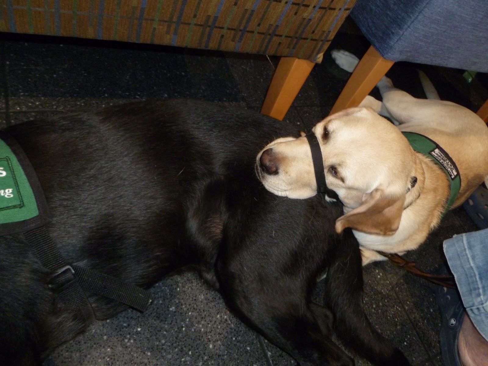 We got permission for Casey to be out and about one day early so she could attend a multi-club puppy meeting with our CFR today at the Career and Technology Center. It was so nice to be able to take booth girls out. Lindsey said that she needed to have a bath first to help her not smell so interesting to any intact males. Casey got to meet her brother Crosby after the meeting. As we were chatting with his raisers we found out that Crosby is an ear sucker just like Casey. Isn’t that funny. We talked to Barb about Waffles fear reactions and got permission to start her on food protocol. I’m so glad, I think this will help her immensely.