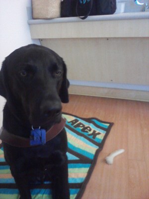 We got some shocking news from Sue about Apex today. He is having surgery on Friday. On Wednesday night she took him to the vet because she thought he might have an ear infection. Well her vet is very careful with Apex and so she checked him over carefully while he was there and she found a “wart” on his knee that she didn’t like the “feel” of. So she tested it and found it to be a cancerous lesion with a wide base.