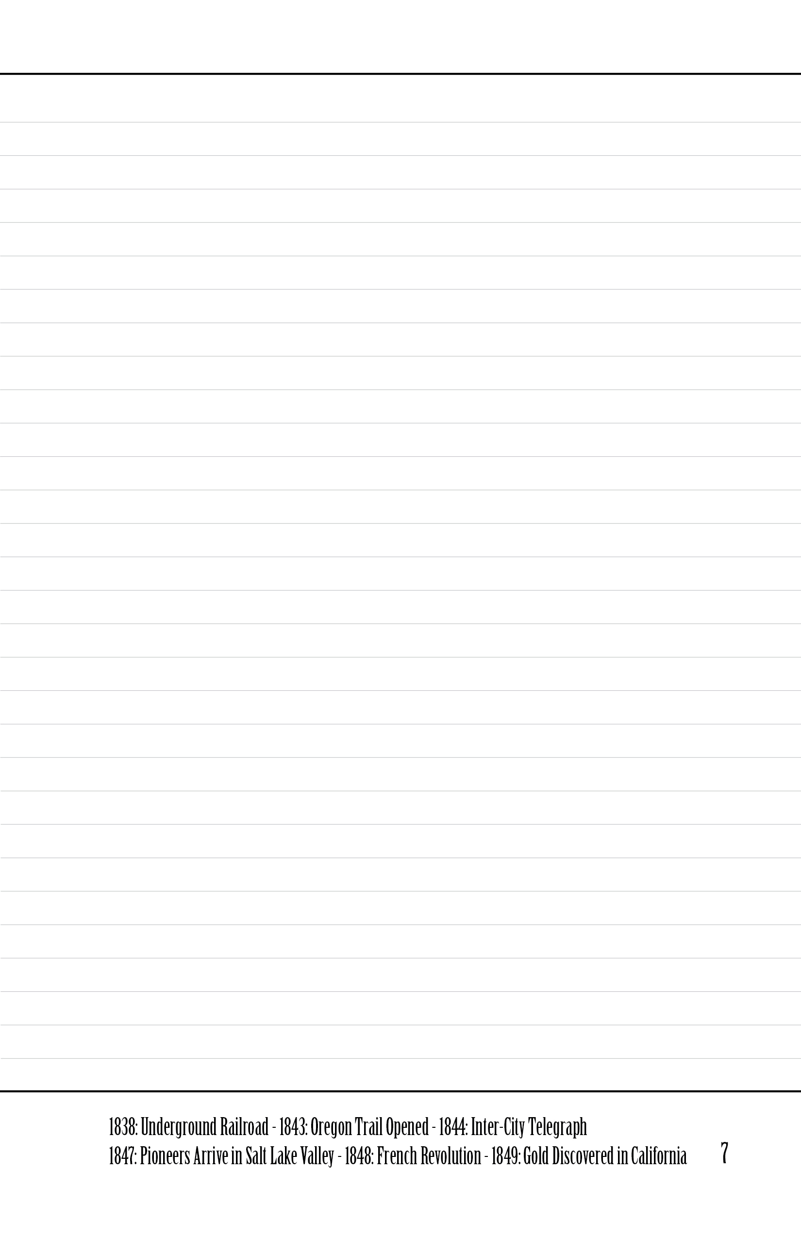 The rest of the pages up to the last page look like the page above. On the left had side there is a simple timeline of events along with excerpt from “Some Must Push and Some Must Pull; Mary Taylor, handcart Pioneer And Her Descendants” by a distant cousin Kenneth L. Rasmussen. The right hand page of each spread is for journaling. At the bottom of the journaling pages is a date from history. The purpose of these pages are to help each person to “mix it with history” and “walk in their shoes” as suggested by The Generations Project.