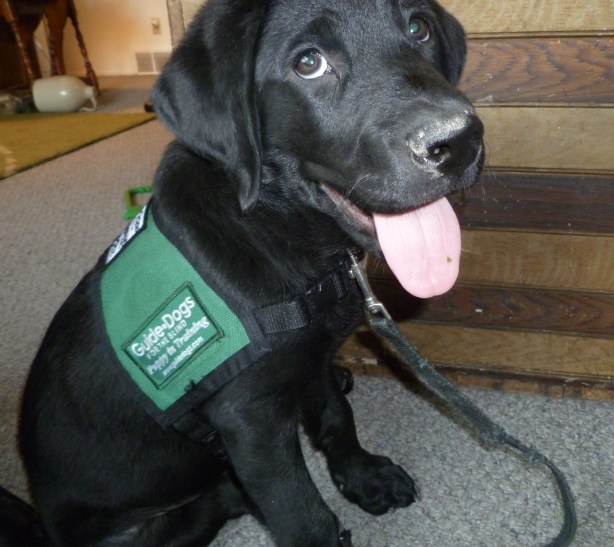 Today Zodiac went with Bill to work, just for the morning. He did just fine, though he still needs some more work on adjusting to his head collar. We worked on it this week but that work isn’t done yet. By the way, doesn’t he look so cute in his jacket. I don’t think there is anything cuter that a young puppy in a training jacket. And when you see them walking through some public place it is the cutest thing. They are so tiny and so curious about the world. Plus there is a bounce to their step that is most adorable.