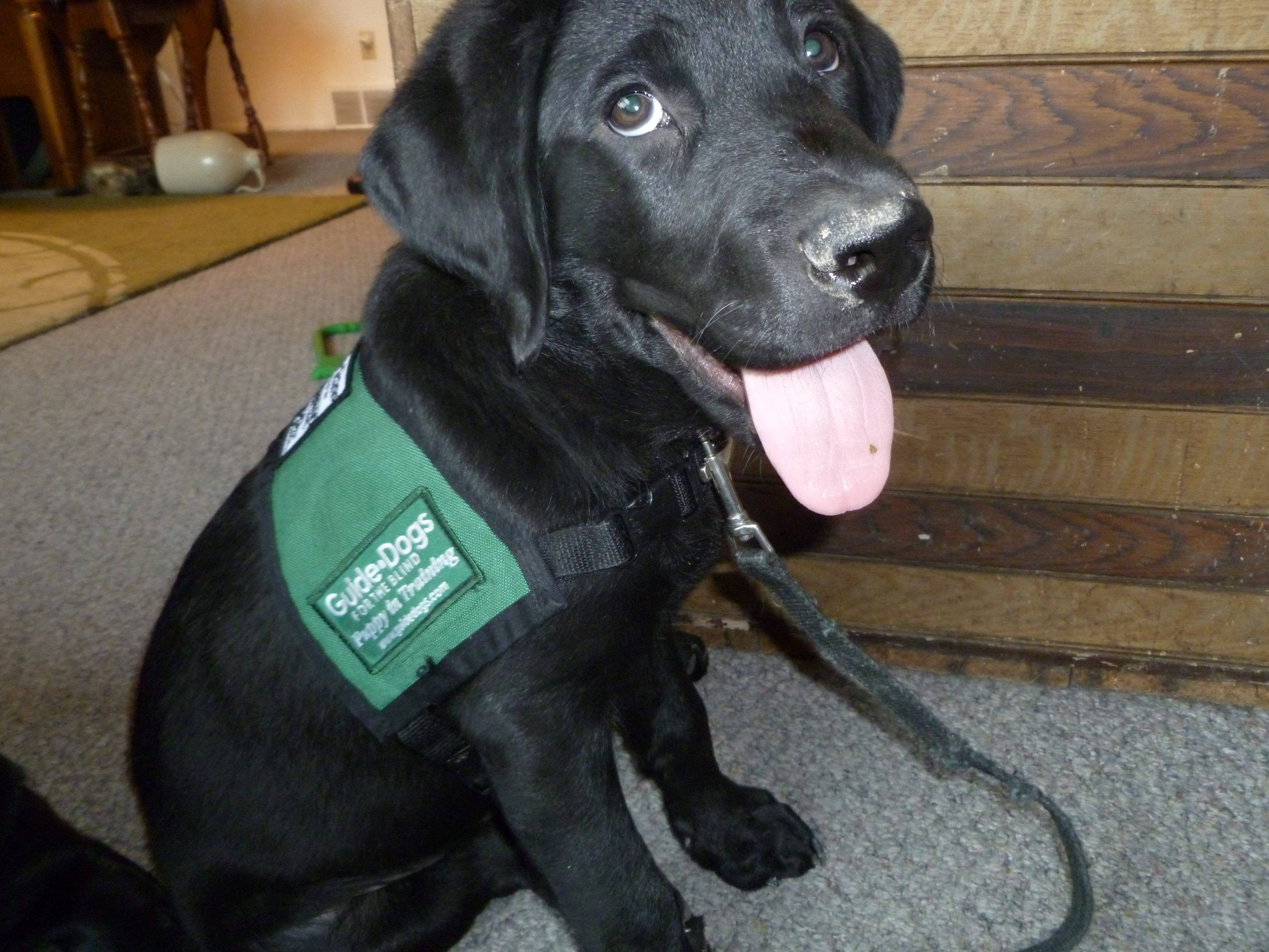 Zodiac got his official puppy in training jacket this week. It is a big milestone in a little puppies life. The important thing is to start socializing slowly and carefully, paying attention to how the young puppy is handling new situations and places.