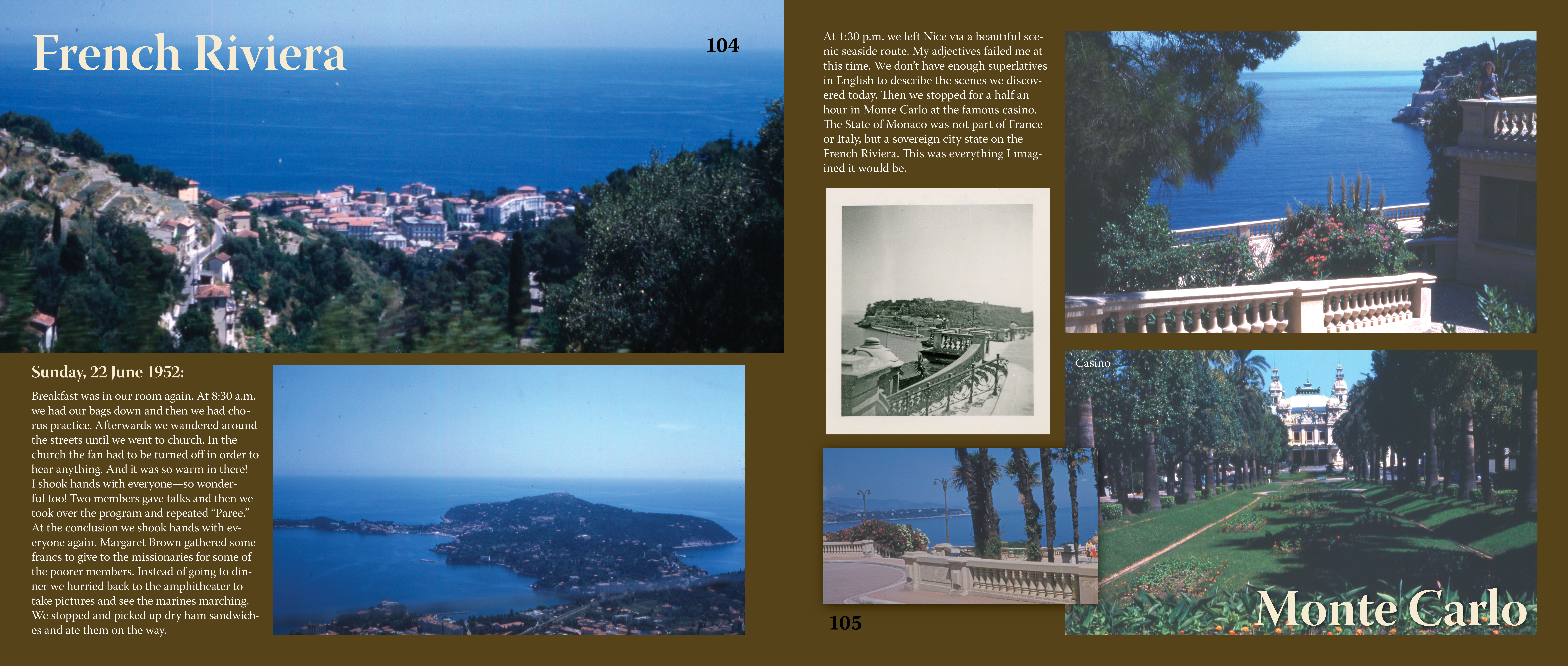 This had been such a charming spot. It was hard to leave. So far I would say France and Italy were quite similar, except it was my impression that Italy was less expensive, had cleaner restaurants, and had more war damage. The people seemed to be in greater need because they had more street peddlers. Perhaps I may change my mind on these things later. Also the shops had hoola doors which were kind of oriental like. We left the beautiful city of Rapallo climbing upward along the seashore, then down again to the next town, and up again towards the mountains which was between us and the sea. There were impressive winding roads and mountainous territory to view.