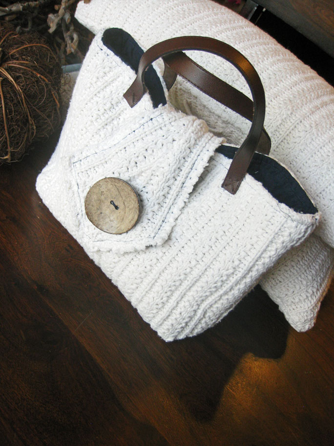Continuing our sweater theme for January, I thought some ideas for transforming old sweaters into a cozy blanket would be perfect for these cold winter days and nights. If the sweaters are wool they can be felted first but you can use them even if they can’t be felted. This one was made with a mixture of cotton, unfelted wool and felted wool. Some wool yarn has been treated to prevent felting.