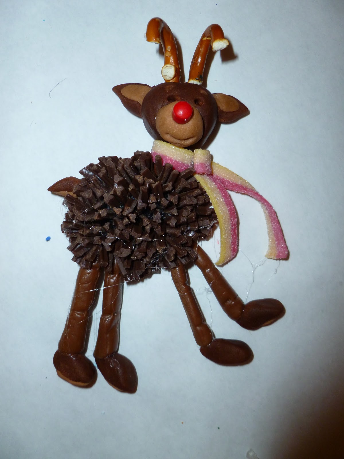 Good news today. I got the last three figures done! I got the elf done first and then tackled the reindeer followed by good old Kris Kringle. Woow! It feels so good to have all of the figures tackled. I’m pretty happy with all of them. They certainly aren’t perfect, candy creations never are, but I’m pleased with the overall effect.