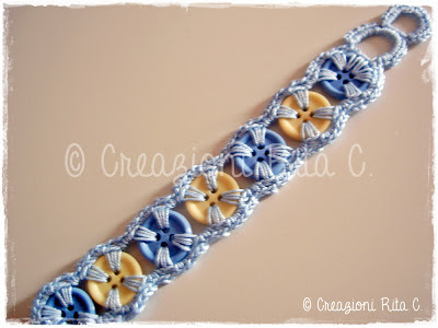 If you have some crocheting experience here is yet another way to make a button bracelet. I like it because it also highlights a skill many of our ancestors had. Here are a couple other samples of crocheted button bracelets with tutorials though one will need some translation to follow along.