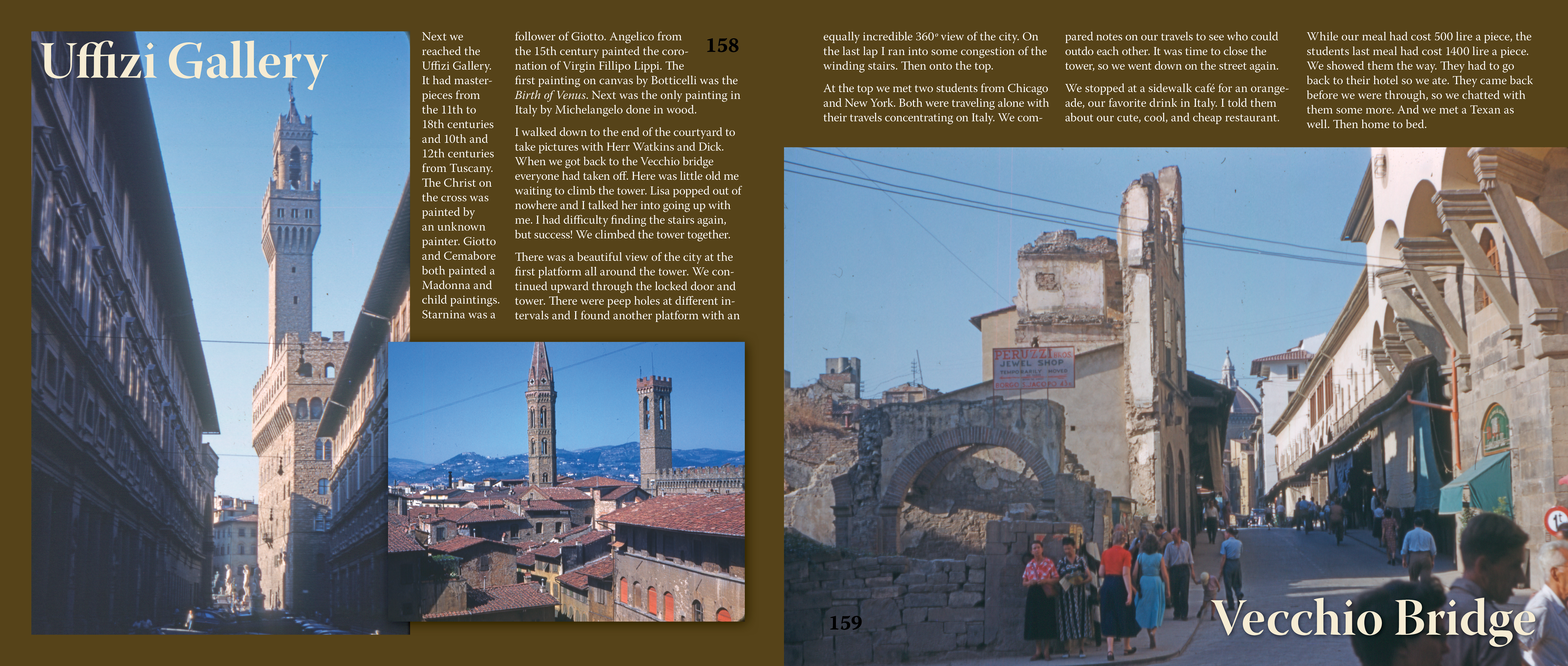 Wouldn’t you like to know something about Venice (Venezia) and Florence (Firenze)?The city of Firenze is not beautiful at first sight, and we wondered why so many tourist loved it so much. The beauty, so rare and excellent of this old city is found in its treasures of art. It is the world’s greatest art center, and in the 13th century was the greatest money market.