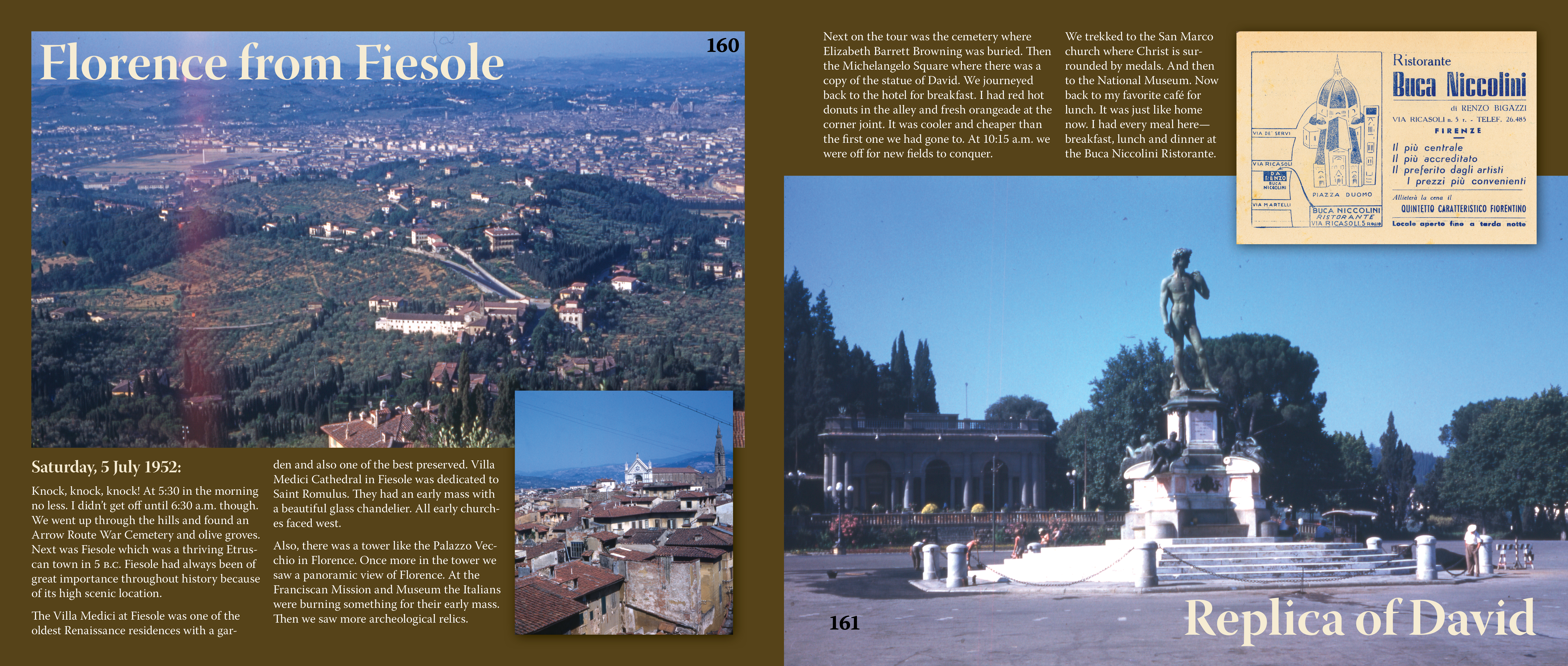 Up the steps to Michelangelo Square, we stood near another statue of David (the original of which we saw in the Academy and Tribune of David) to see the city of Florence and locate the various spots of interest we had seen.