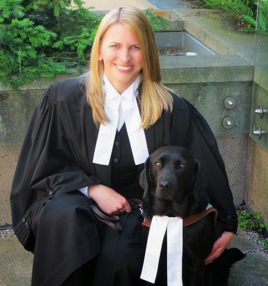 Carrie Moffatt lives with her guide dog Casey in North Vancouver, British Columbia. At the age of 16, Carrie began losing her vision and was eventually diagnosed with Usher Syndrome, a dual sensory impairment that affects her hearing and sight. She didn’t let this stop her and went on to pursue an undergraduate degree in Political Science and Environmental Studies, as well as a communications diploma. She later completed her law degree at the University of Victoria, where she ranked near the top of her class and won several awards, including a research fellowship.