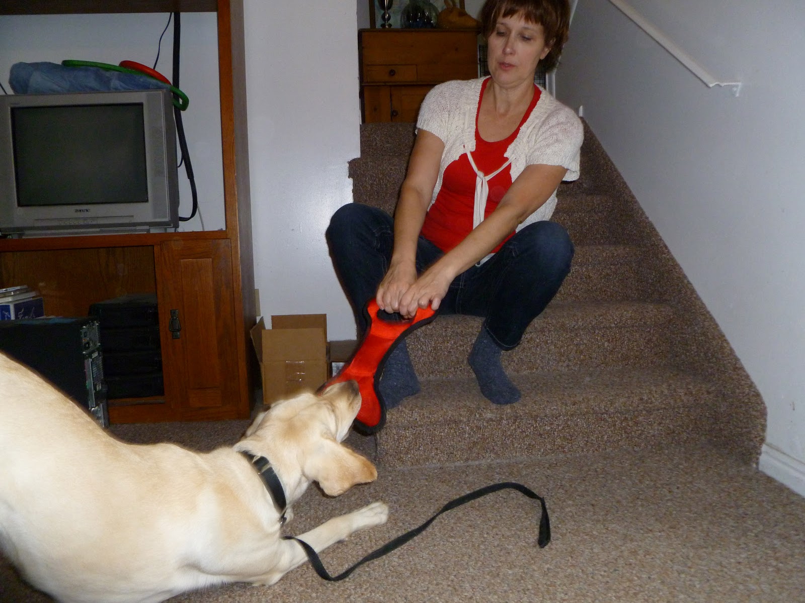 While I was hoping that Fable would wait until after Apex and Yakira’s visit next week, Fable’s body had other ideas. There have been emotional signs for several weeks that her first season was approaching. So I have watched closely for physical signs. On Monday I thought she was starting to look a little swollen. Tuesday afternoon I found a small darkish drop on the kitchen floor. I checked Fable with a Kleenex and sure enough it came back with a pinkish stain. So the days of her confinement began and she missed puppy class that night. I’m so glad she got to have a fun weekend playing with Odie. He stayed with us for the holiday while his family had an adventure that was better off without him. Odie is a good puppy and Zodiac’s nephew which also made it really fun to have him.