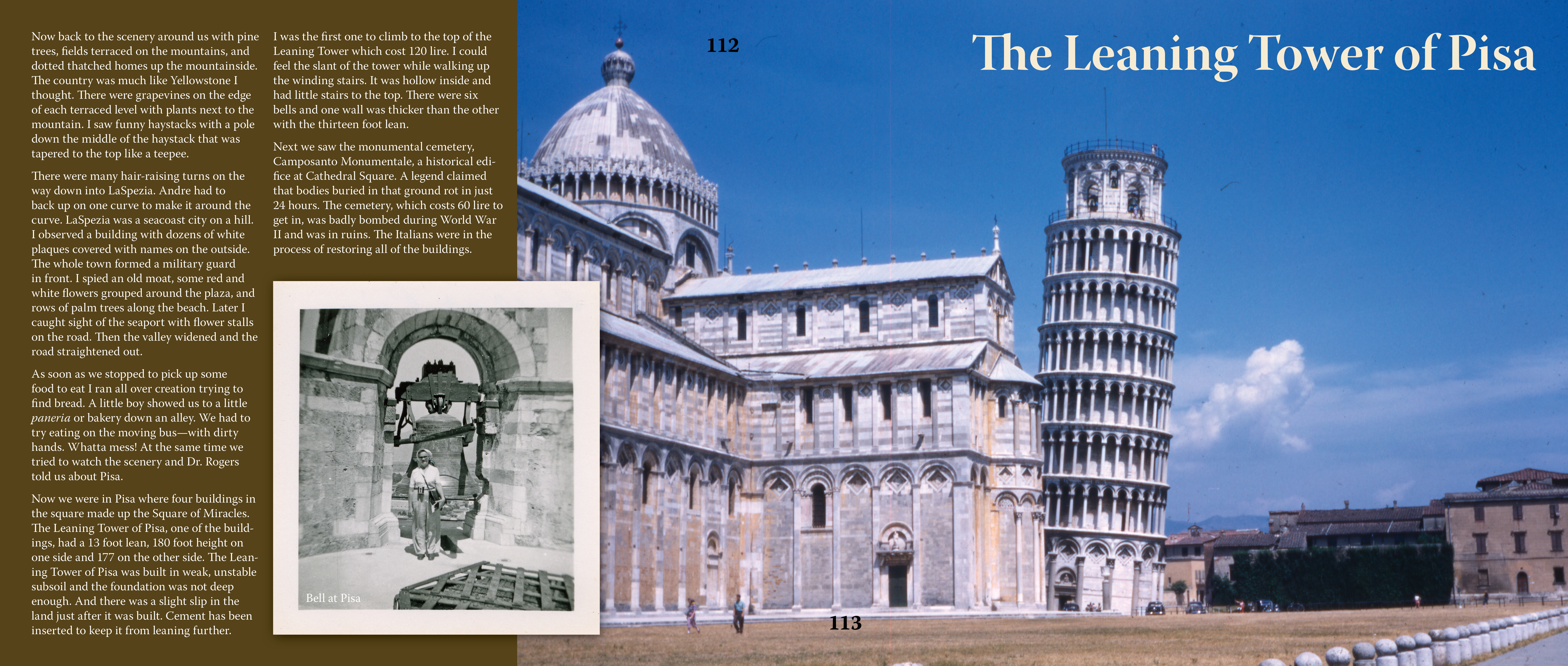 What a commotion we cause in Milano (Milan) when our bus load of 32 American girls and four men were unloaded in front of a boy’s dormitory — Casa delo Students! The boys were eating their evening meal at the time, but soon their severe dining room was buzzing with excitement, and then it was practically empty for about 54 of them came out to talk to the 12 girls and two men who were left. The others were to stay a block away. The manager of the dorm was concerned so he stayed up all night patrolling the corridor. The girls enjoyed good conversation with these fine college students who were studying engineering. We were on our way again by 7 a.m. Venezia (Venice) with its waterways and gondolas, 100 islands and 400 bridges, was enchanting. It took six gondolas to transport our group from bus to hotel, but what delightful transportation. Gliding smoothly along in a cushioned carpeted gondola, made of some kind of dark wood, we noticed the pretentious buildings, somewhat rusty and adorned with moss. White marble steps so close to the water were draped with green moss.Sinking City