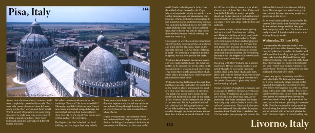 Docked in port was a ship flying the American flag. Cheers from the girls soon brought all hands on deck. “Hi-ho, anyone there from Arizona?” —”Yes, and Utah too.” It didn’t take long to get acquainted with these sailors from Trieste. They entertained the group on board ship the next day.