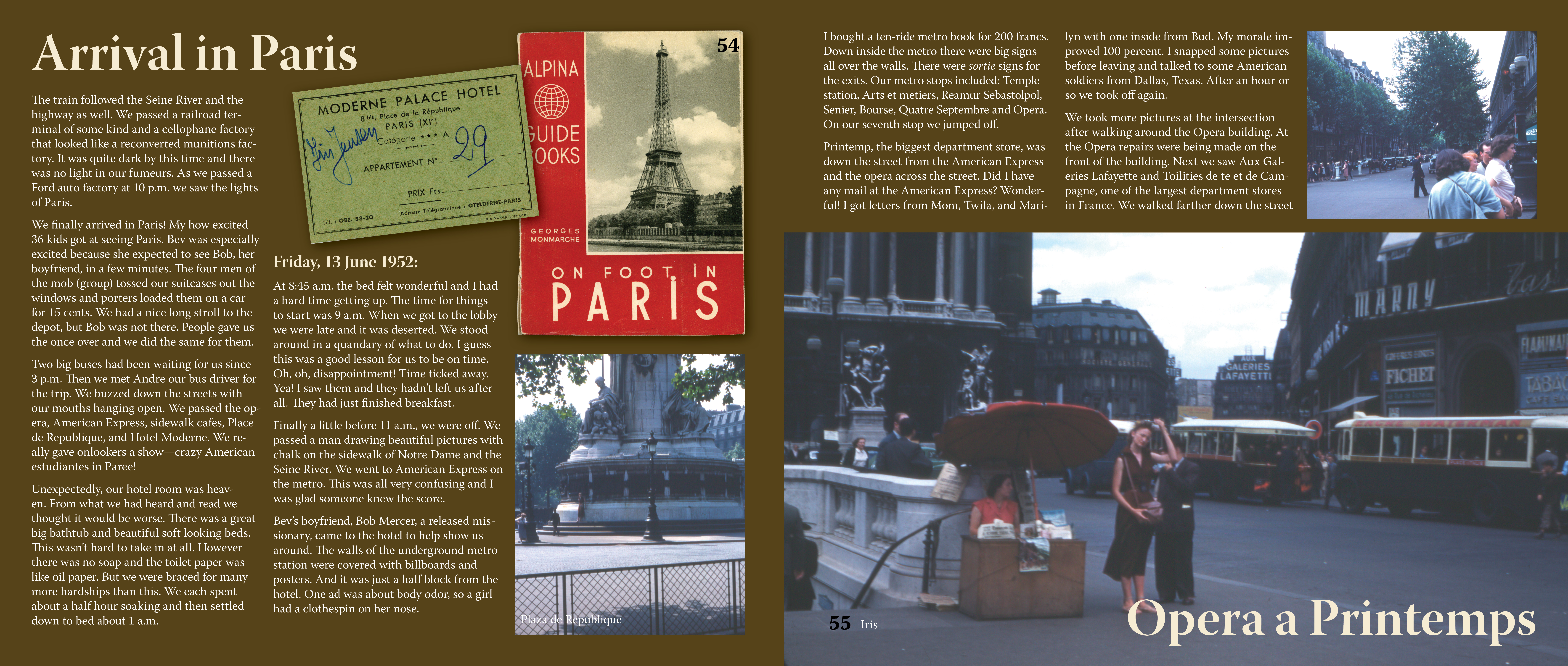 Finally, we were off again. There were not many new cars in Paris and trinkets and tourist items were everywhere in the store windows. Hotel Maurice was probably like a hotel in Mexico no doubt. The mob was strung out the length of a block and we ended up at some kind of shop Bob Mercer had guided us to. The lady supposedly gave us a bargain.