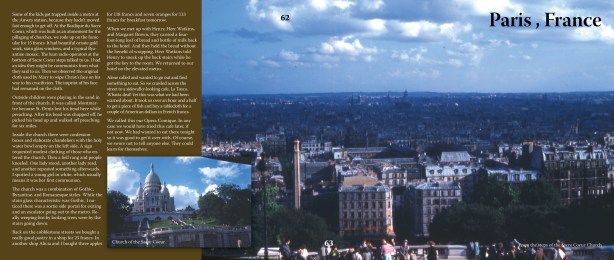 Outside children were playing in the sand in front of the church. It was called Montmartre because St. Denis lost his head here while preaching. After his head was chopped off, he picked his head up and walked off preaching for six miles.