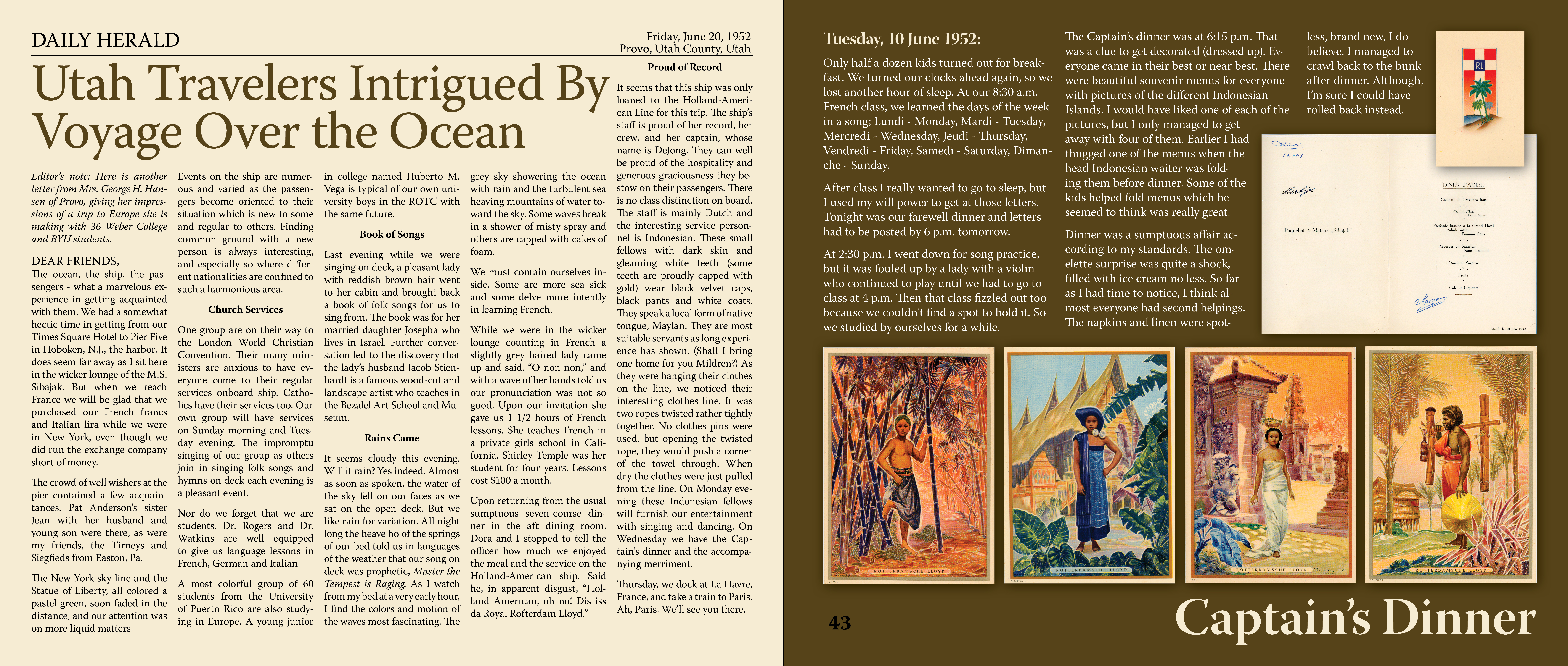 A student showed us around and helped us find a restaurant and pastry shop. At the restaurant the waiter accidentally spilled water on my skirt. The man was in a tizzy, because all of us didn’t want full dinners. I could hardly wait to see what the soup looked like. My second thought was I wish I hadn’t ordered the soup. In fact, I certainly was not hungry when I saw the soup—it looked disgusting. I ate all my pastries instead and I could see I was going to starve to death in France.