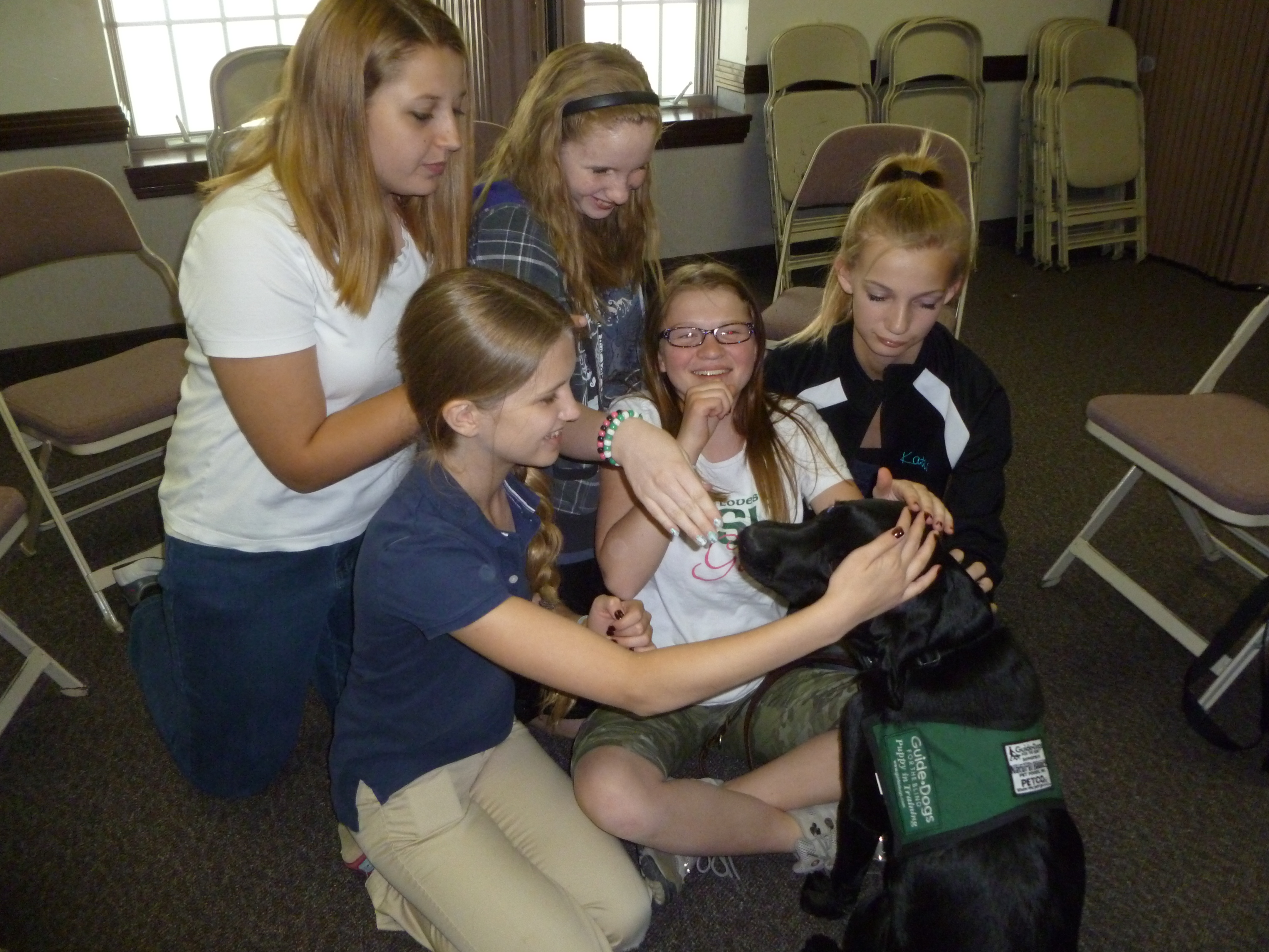 On Thursday, Yakira and I went to talk with a Girl Scout group about service dogs. Yakira was a good girls, as usual and she had a fun time playing tug with the girls. We talked about the kinds of service dogs and the breeds of dogs that are most often used for service dogs. The girls asked a few questions but their leaders had lots more questions. I think some of the girls were a little shy. One of the girls took a photo of her and Yakira while Yakira was giving her a kisses. It was a good experience and we will probably get more opportunities like it in the future.